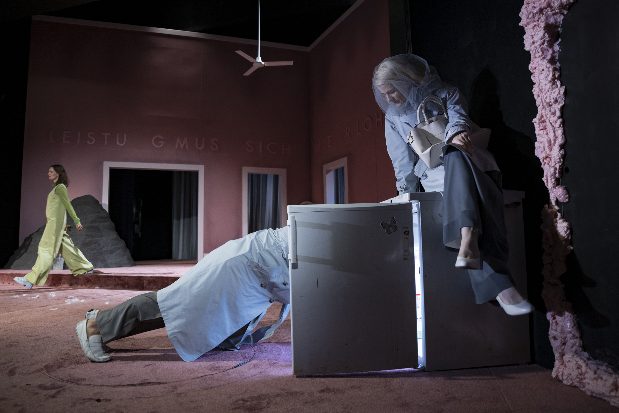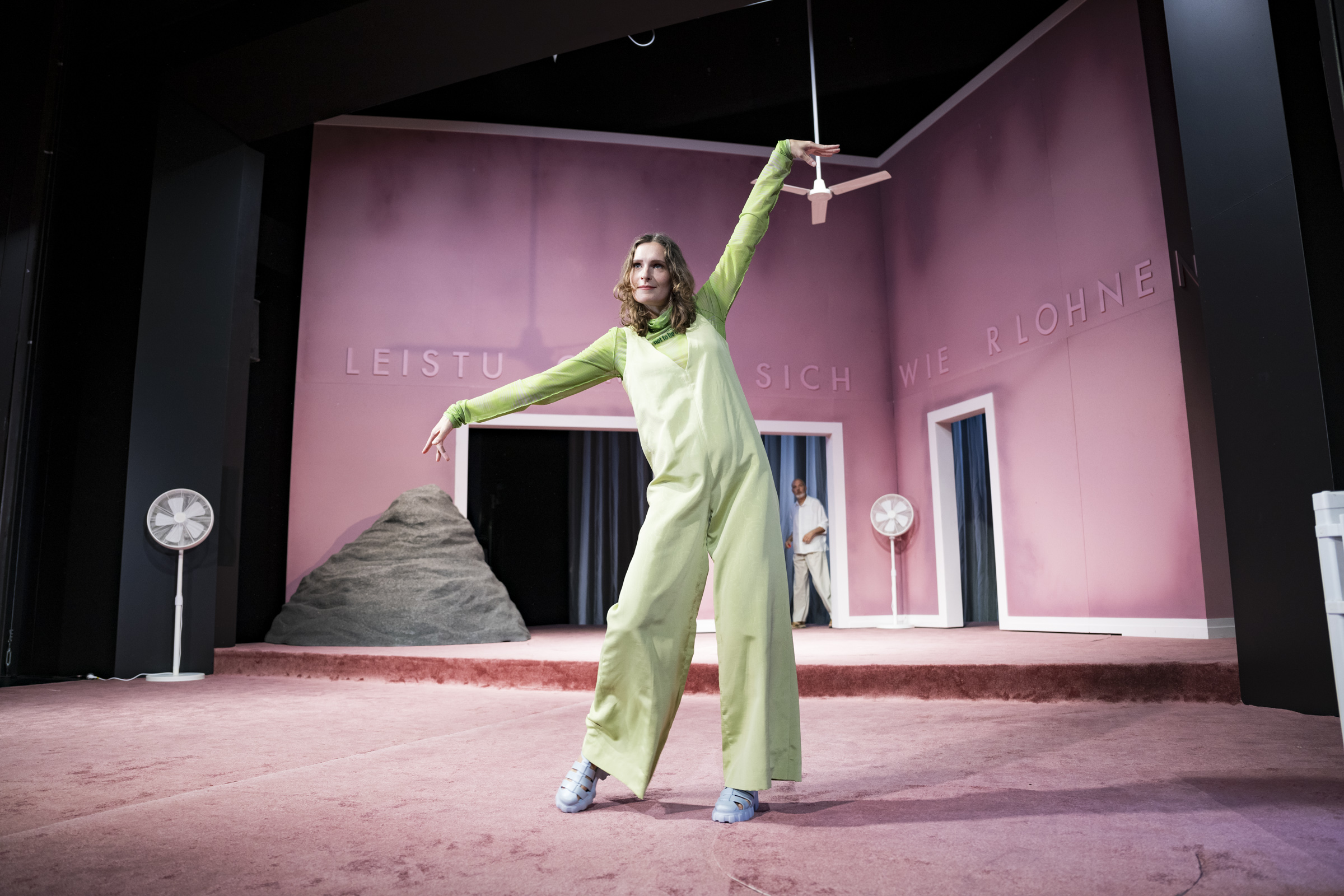 Teppichboden, Drehscheibe, Styropor, Split, Regenanlage, Bauschaum, Voile, Sperrholz, Theaterlatten, Ventilatoren, diverse Requisiten